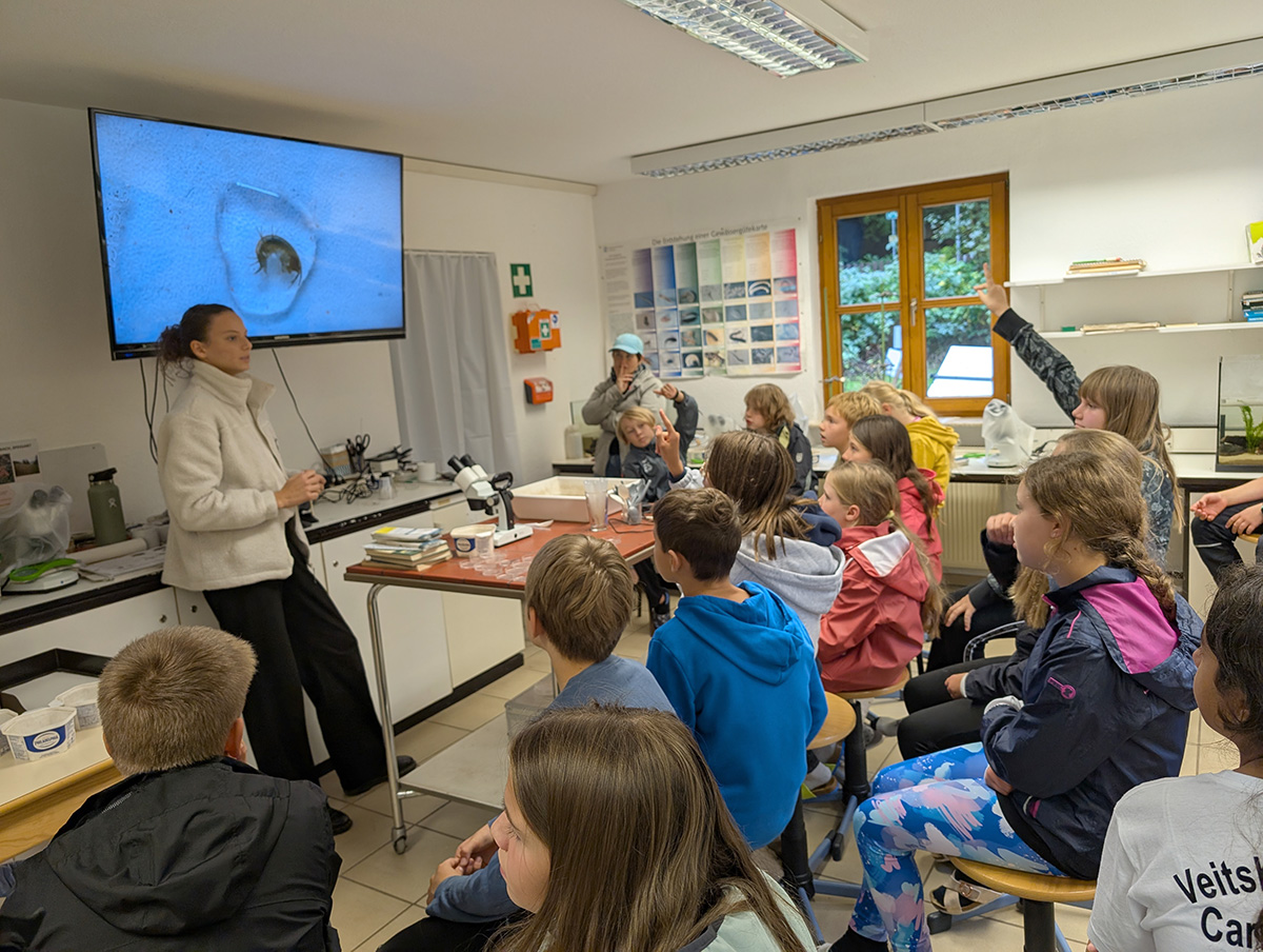 Gleich zu Beginn des neuen Schuljahres verbrachte die Klasse 5b vom 24. bis 26. September 2025 gemeinsam mit ihrer Klassenlehrerin Frau Denecke und ihrem Musiklehrer Herrn Borho unvergessliche Kennenlerntage im Schullandheim Hobbach. Schon die Busfahrt dorthin war voller Vorfreude und Aufregung. Vor Ort wartete ein abwechslungsreiches Programm, das nicht nur für viel Spaß, sondern auch für ein gutes Miteinander sorgte. Im Rahmen einer Schullandheimrallye erkundeten die Schülerinnen und Schüler das Gelände und stellten dabei ihren Teamgeist unter Beweis. Besonders interessant war auch das Projekt „Fließgewässer“: Mit Sieben und kleinen Plastikgefäßen wurden Tiere aus dem Bach gefangen. Anschließend konnten sie mit Lupen genauer betrachtet und gezeichnet werden. Dabei entdeckten die Kinder unter anderem Eintagsfliegenlarven, Köcherfliegenlarven und Bachflohkrebse – ein Erlebnis, das den Unterricht lebendig machte. An einem der Tage stand eine Wanderung nach Heimbuchenthal auf dem Programm. Ziel war die „Pedalwelt“, wo zahlreiche außergewöhnliche Fahrräder ausprobiert werden konnten. Dabei hatten alle viel Spaß. Auch die Musik kam nicht zu kurz: Als Bandklasse musizierten die Kinder gemeinsam, probierten verschiedene Instrumente aus und sangen zusammen. Dadurch wuchs das Gemeinschaftsgefühl noch stärker. Am Ende waren sich alle einig: Diese Tage in Hobbach haben nicht nur neue Freundschaften entstehen lassen, sondern auch gezeigt, wie schön Lernen außerhalb des Klassenzimmers sein kann.