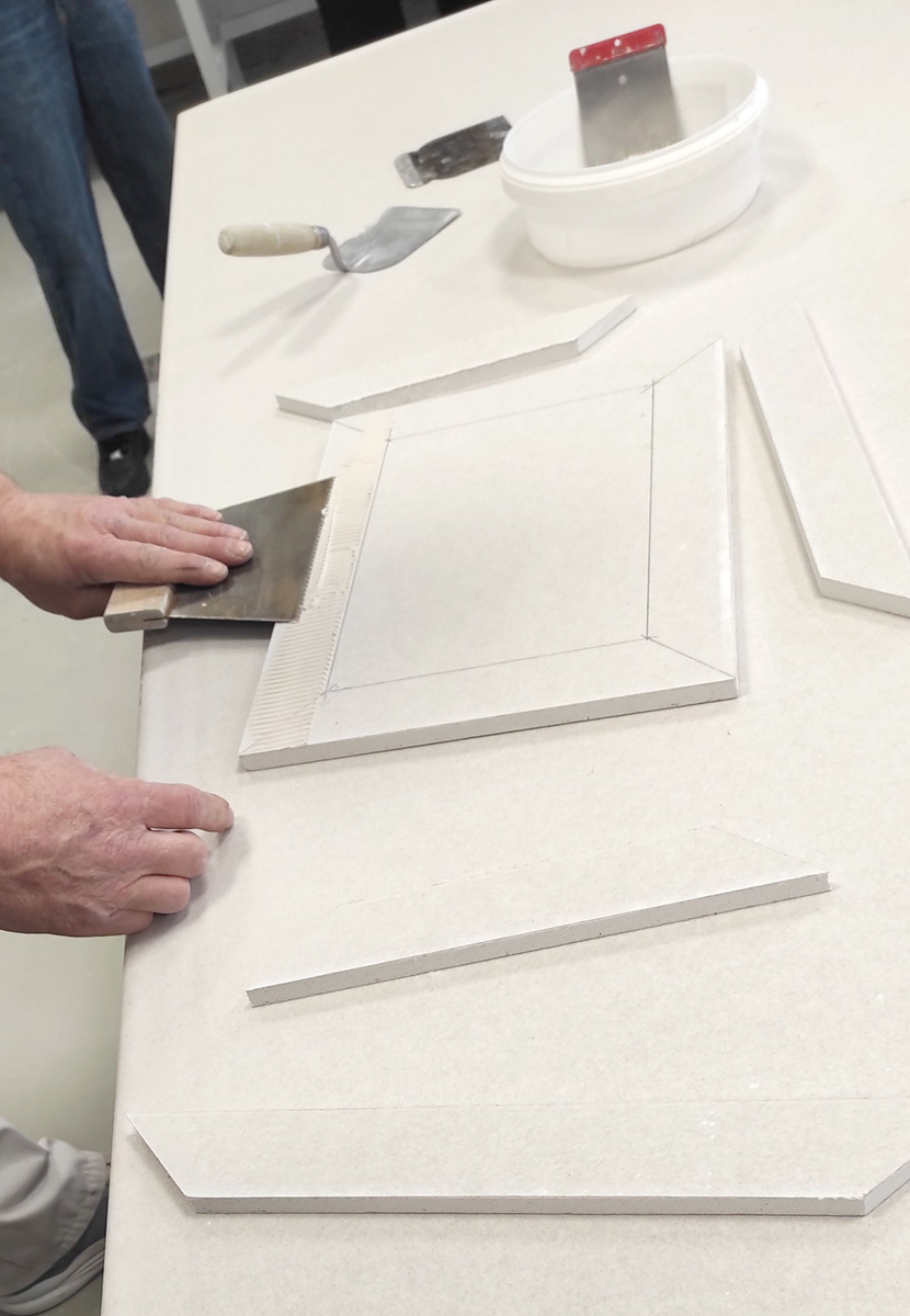 - Feinschliff und Struktur: Nach dem Schleifen der Kanten wurde Spachtelmasse fachgerecht mit Aufzahn- und Japanspachtel aufgetragen.