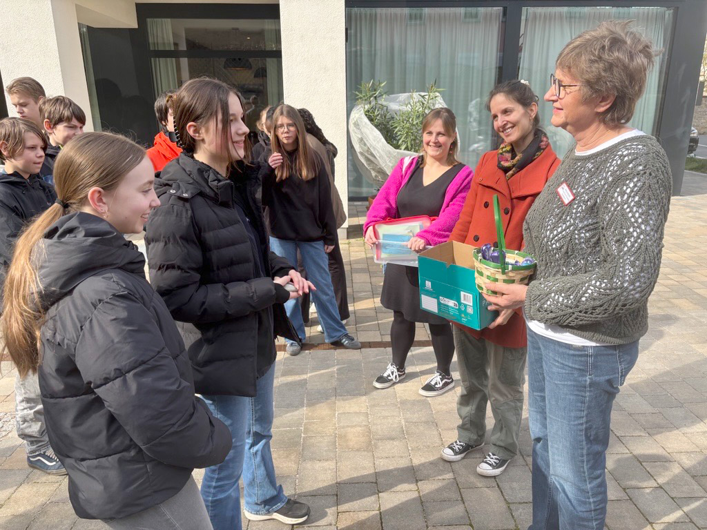 Mit viel Vorfreude hatten sich die Schülerinnen und Schüler der 7. Klasse im evangelischen Religionsunterricht auf ihren Besuch im Seniorenheim des Marie‑Juchacz‑Hauses vorbereitet. Schon als Fünftklässler hatten sie dort Zeit mit den Bewohnerinnen und Bewohnern verbracht – ein Erlebnis, das vielen bis heute in guter Erinnerung geblieben ist. Nun wollten sie diese besondere Verbindung zu Ostern wieder aufleben lassen.