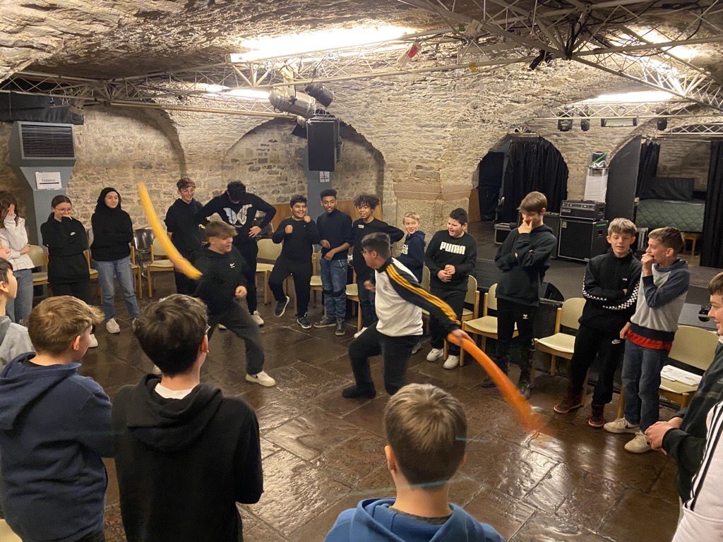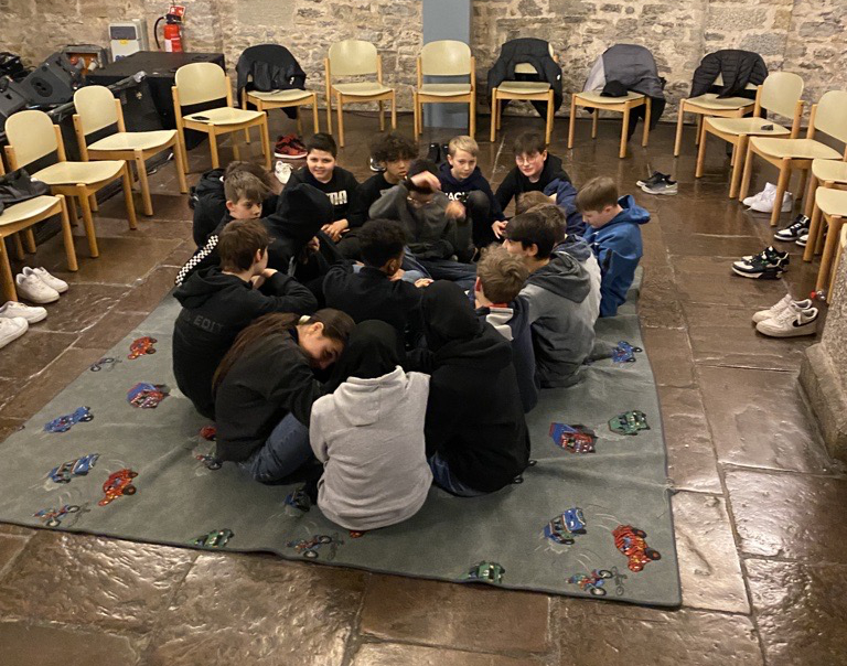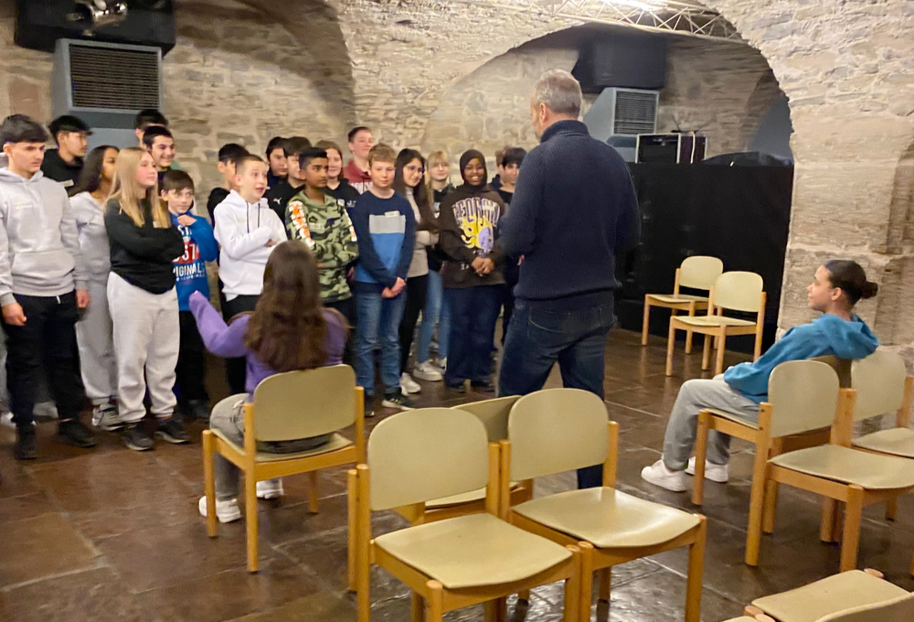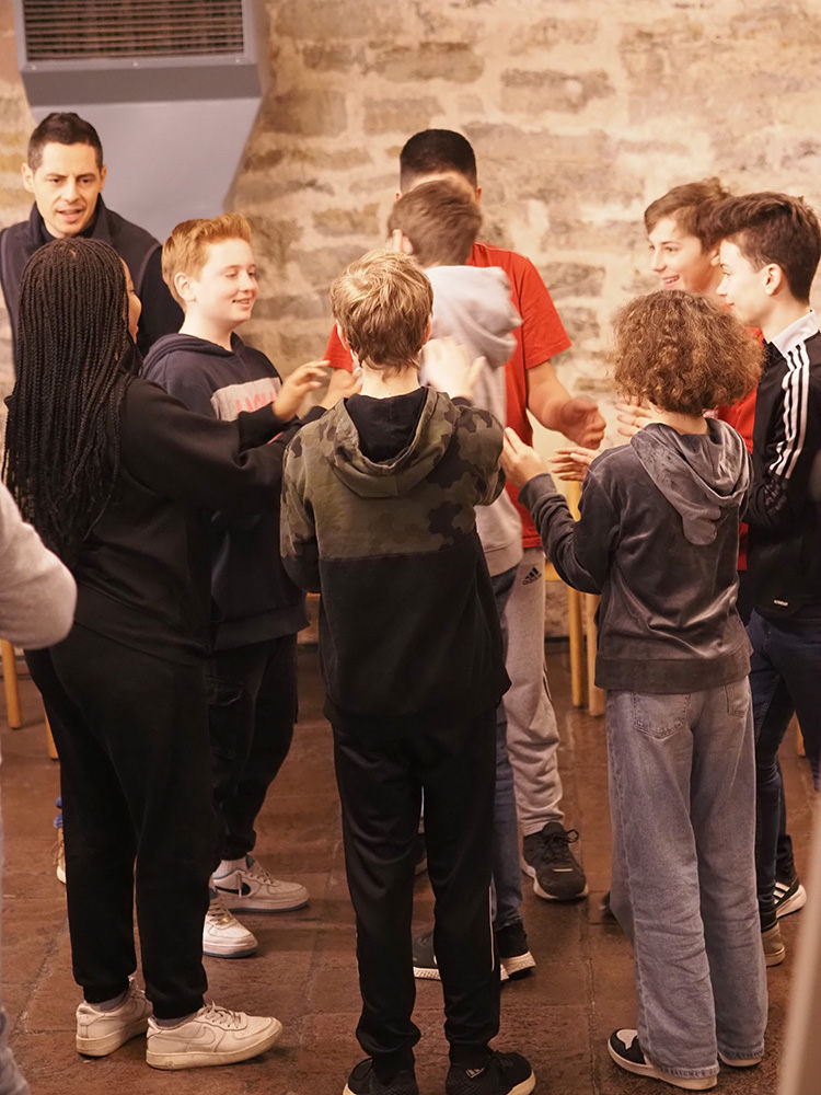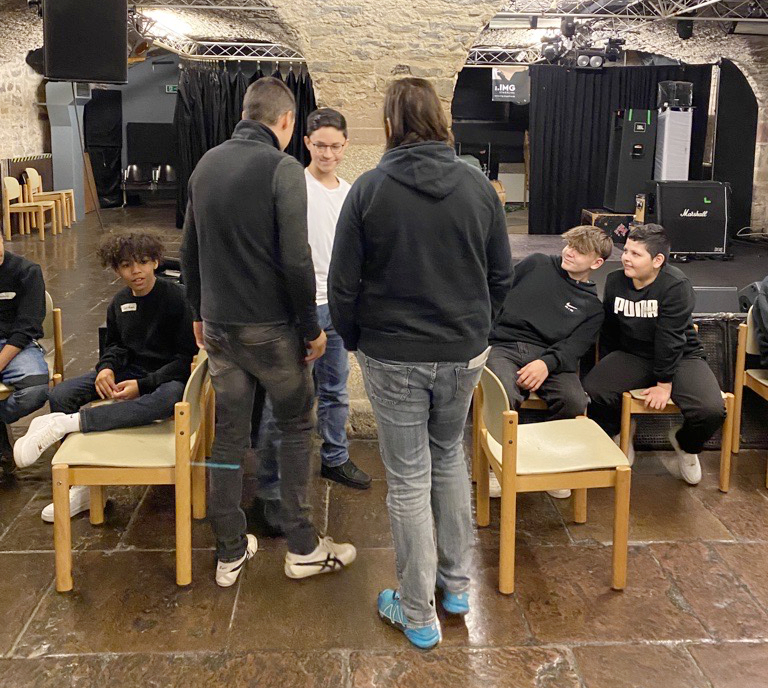 So kamen in den beiden Wochen vom 6.- 16.3.2023 die 7a, 7b, 7c, und 7d jeweils an zwei aufeinander folgenden Tagen im Jugendzentrum des B-Hof zusammen und wurden von den KlassenleiterInnen dabei begleitet.