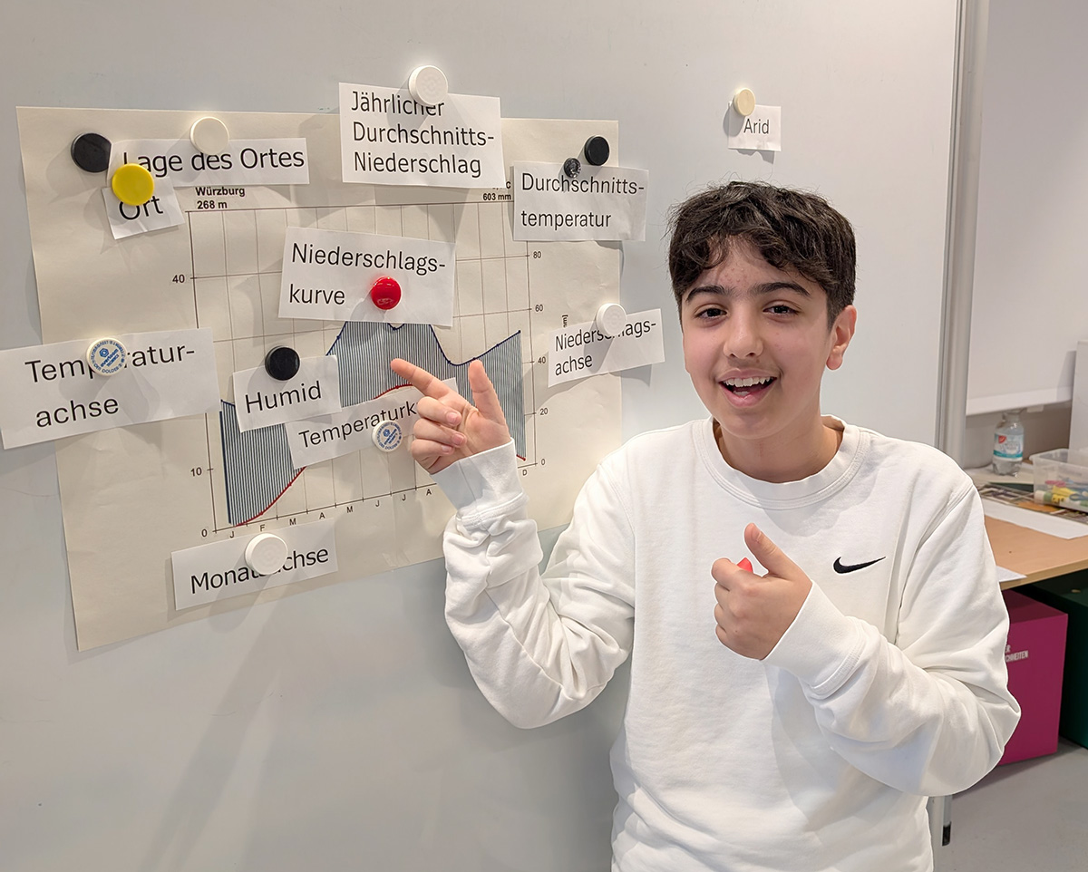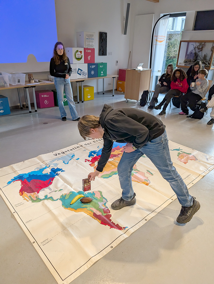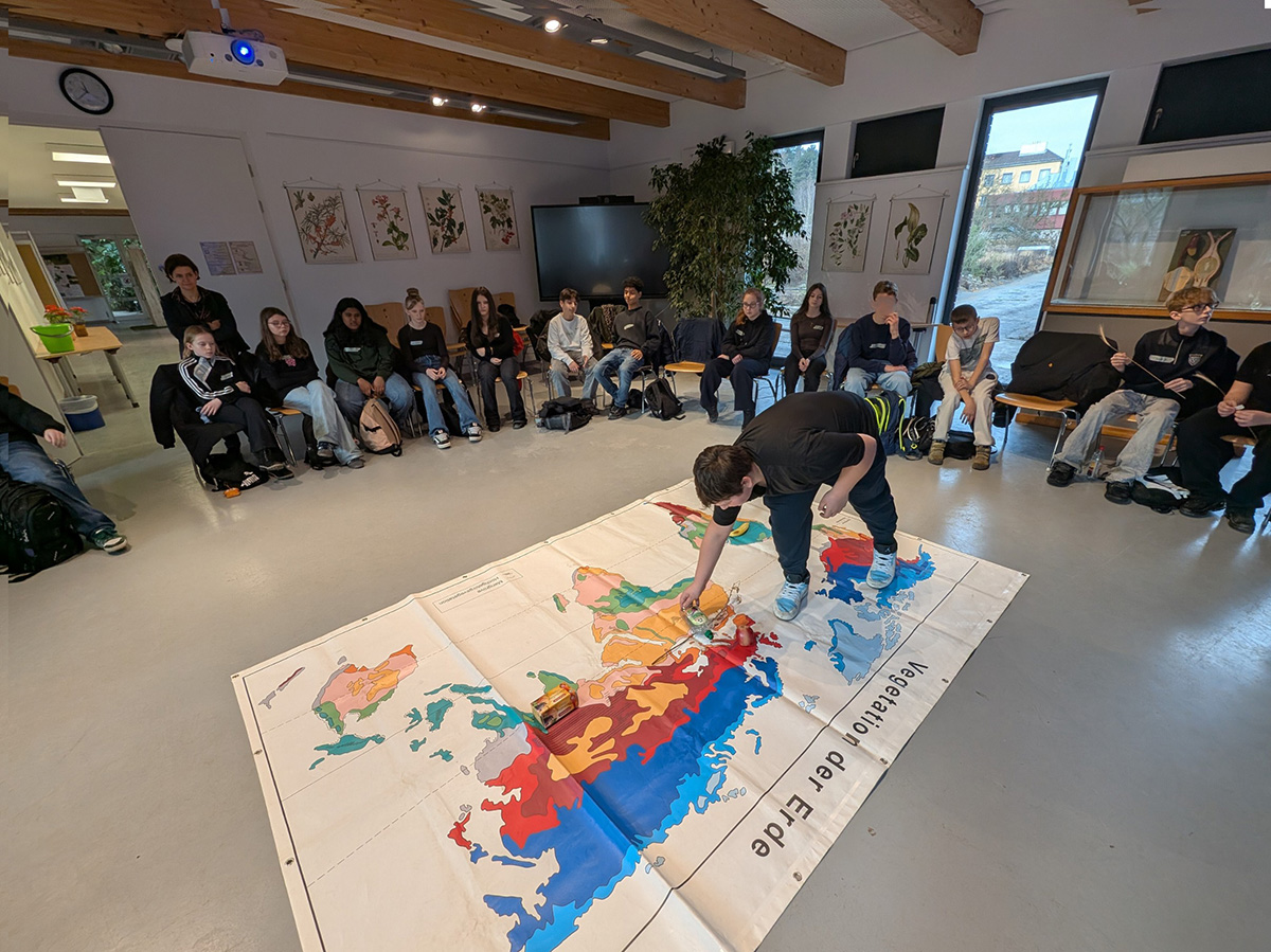 Im Mittelpunkt stand die Frage, woher alltägliche Produkte wie Schokolade, Kleidung, Tee, Kaffee oder Gummi stammen und unter welchen klimatischen Bedingungen die jeweiligen Nutzpflanzen wachsen. Anhand konkreter Beispiele setzten sich die Teilnehmenden mit unterschiedlichen Klimazonen auseinander und erkannten, wie eng Klima und Vegetation miteinander verknüpft sind.