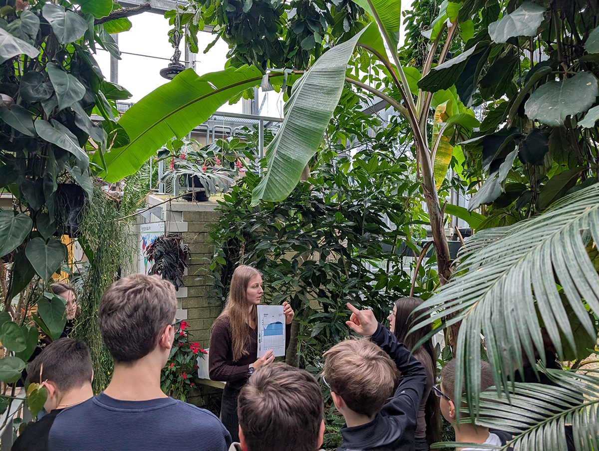 Am Donnerstag, den 15. Januar 2026, unternahm die Klasse 7c gemeinsam mit Frau Schäfer und Frau Denecke eine geographische Exkursion zum LehrLernGarten der Universität Würzburg. Dort nahm die Klasse am Aktionsprogramm „Von der Pflanze zum Produkt – Reise durch die Klimazonen“ teil.